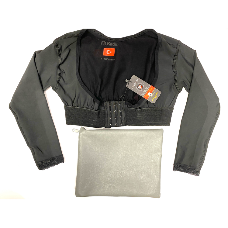 گن نیم تنه بازو از گنهای تخصصی جهت فرمدهی و مراقبت از بازوها بعد از عملهای زیبایی بازو همچون ساکشن یا لیفت بازو است. این گن که به شکل نیم تنه طراحی شده است، بازوها را به طور یکنواخت تحت فشار قرار میدهد و به بهبودی سریعتر و دستیابی به نتیجه بهتر کمک میکند. گن نیم تنه بازو دارای سه ردیف قزن از جلو است و به راحتی میتوان آن را باز و بسته کرد. از آنجایی هم که گن طراحی فیت و ظریفی دارد، در زیر لباسهای روزمره قابل استفاده است. جنس گن تنفسپذیر و ضد حساسیت بوده و کشسانی بسیار بالایی دارد.